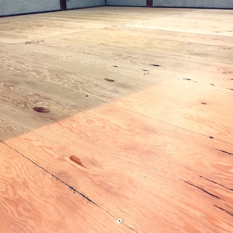 僕は厚み12㎜の針葉樹合板を敷き詰めました。木の本来の匂いというか独特な匂いがするので、苦手な方もいるかもしれませんが、次第に気にならなくなります。